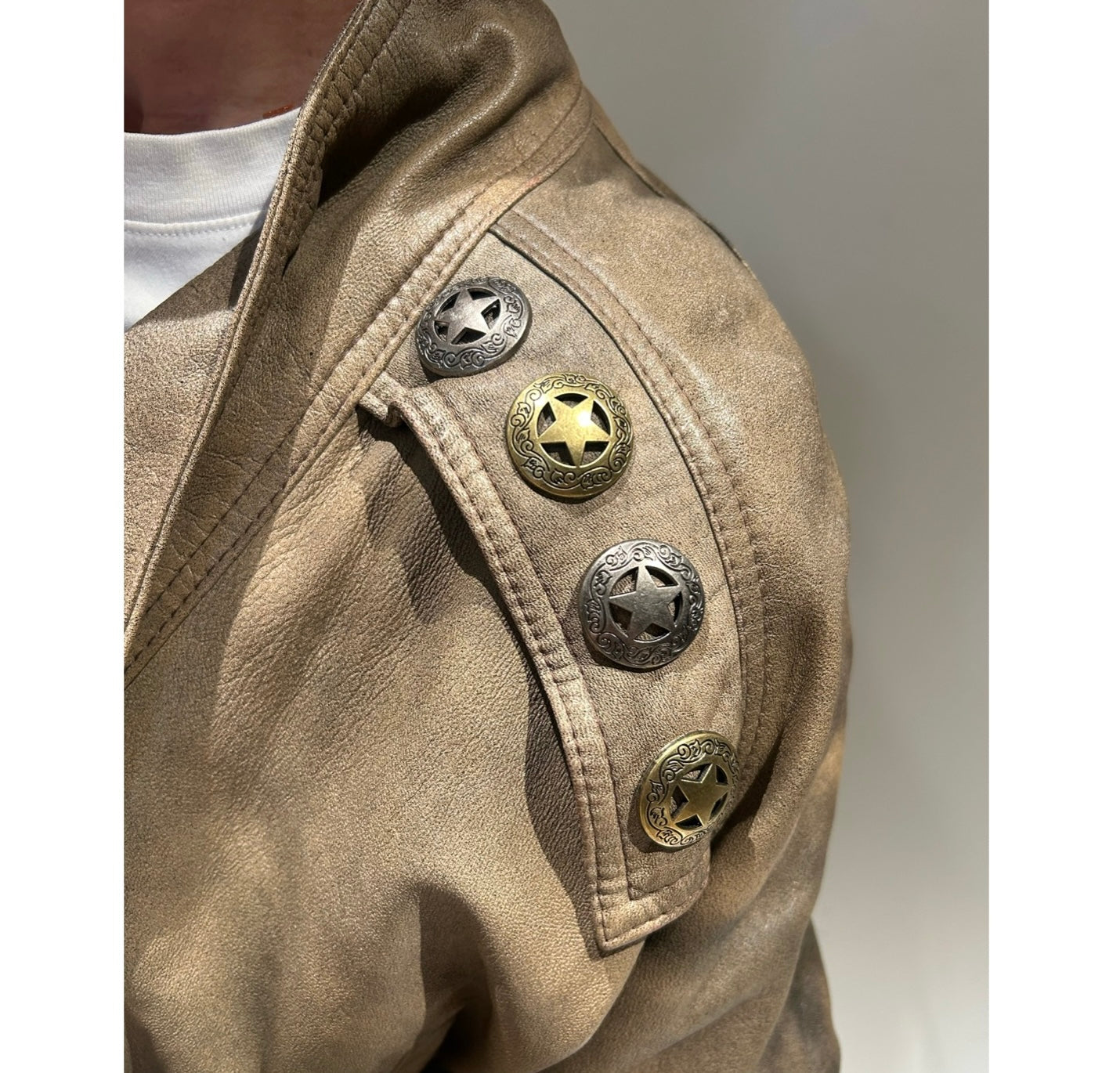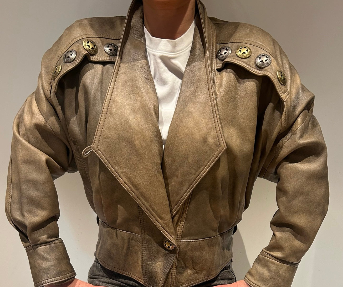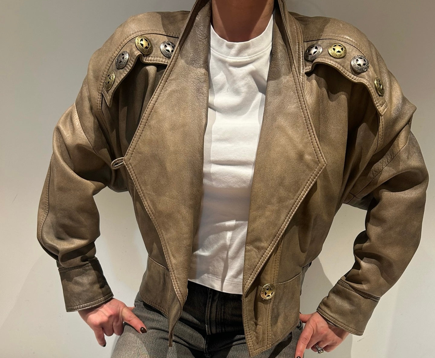Laissez-vous séduire par ce magnifique blouson en cuir beige au charme indéniable ! Véritable pièce vintage, il apportera une touche d'originalité et de caractère à votre garde-robe.