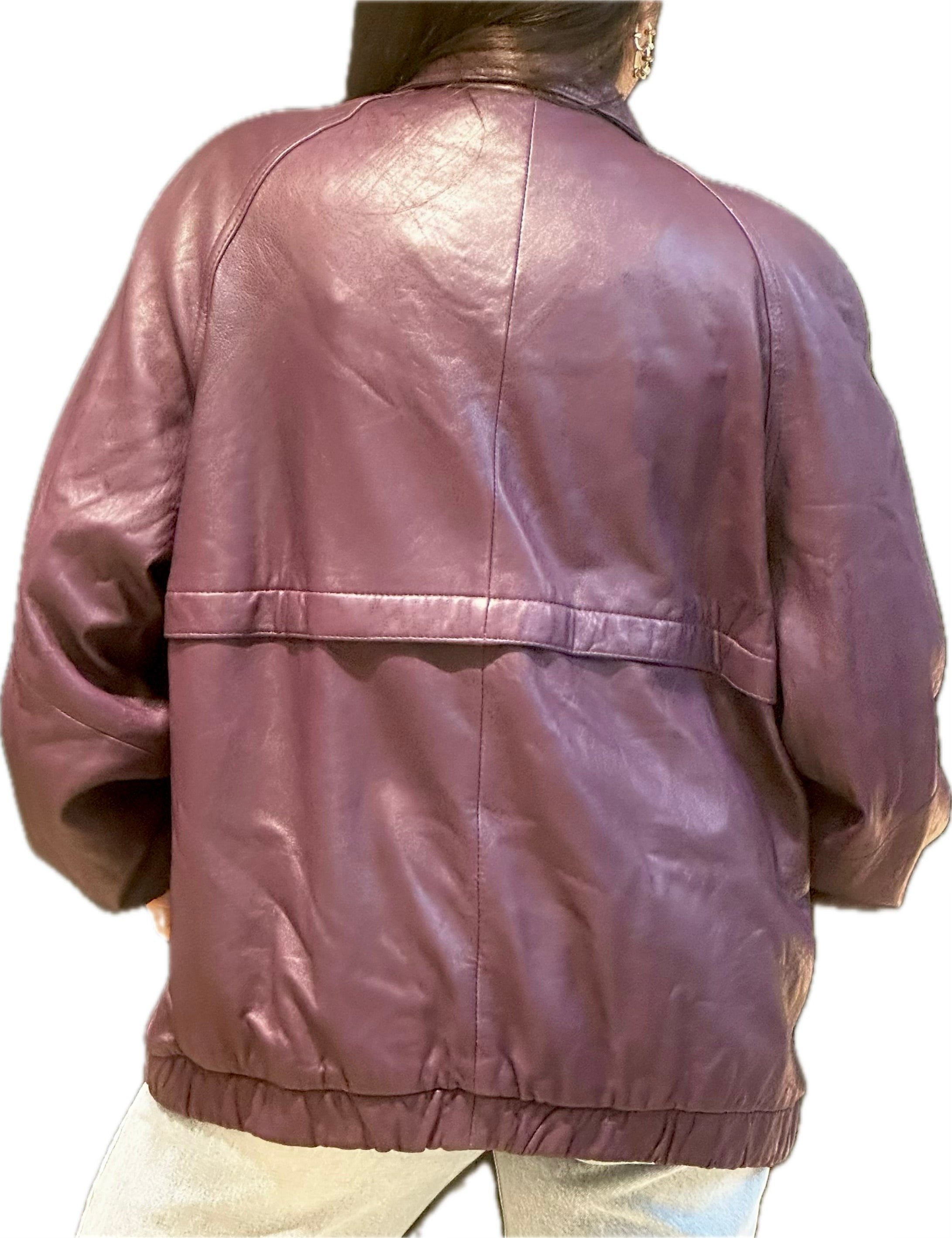 Blouson Bomber en Cuir Vintage – Violet Profond Customisé, Pièce Unique (Taille Unique)