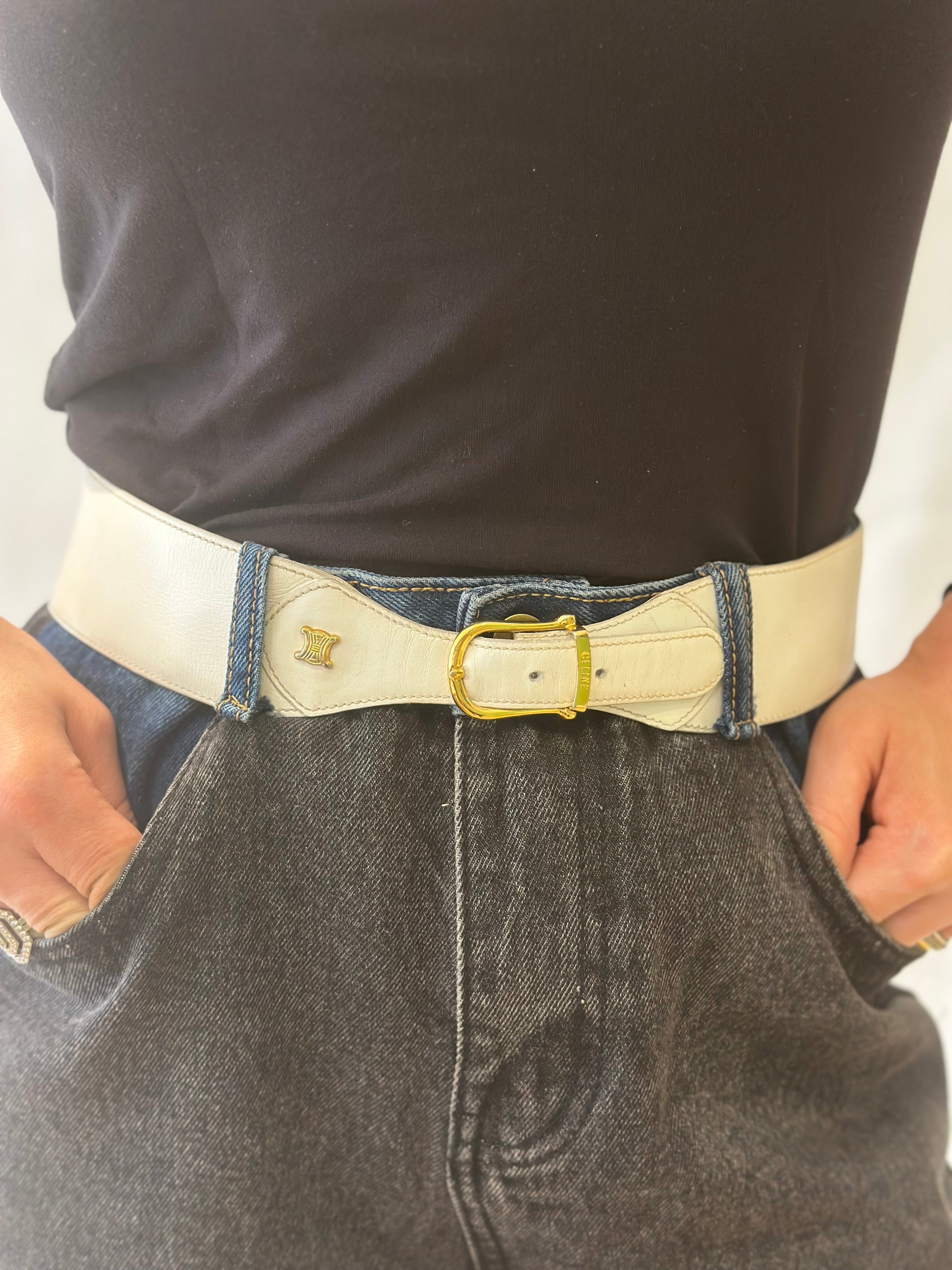 Ceinture Vintage Céline Blanche - Taille 75 Réglable - Détails DorésSublime ceinture vintage signée Céline. Cette pièce élégante se présente... En savoir plus