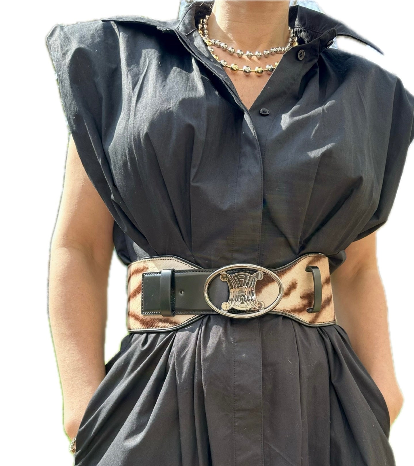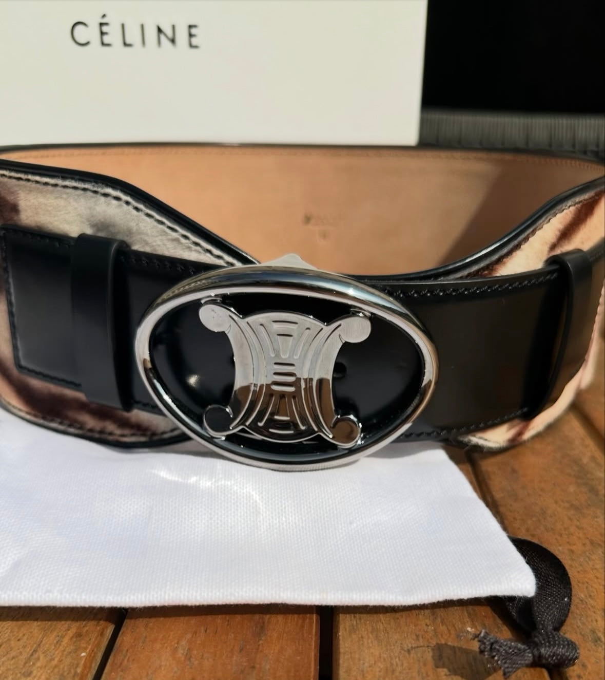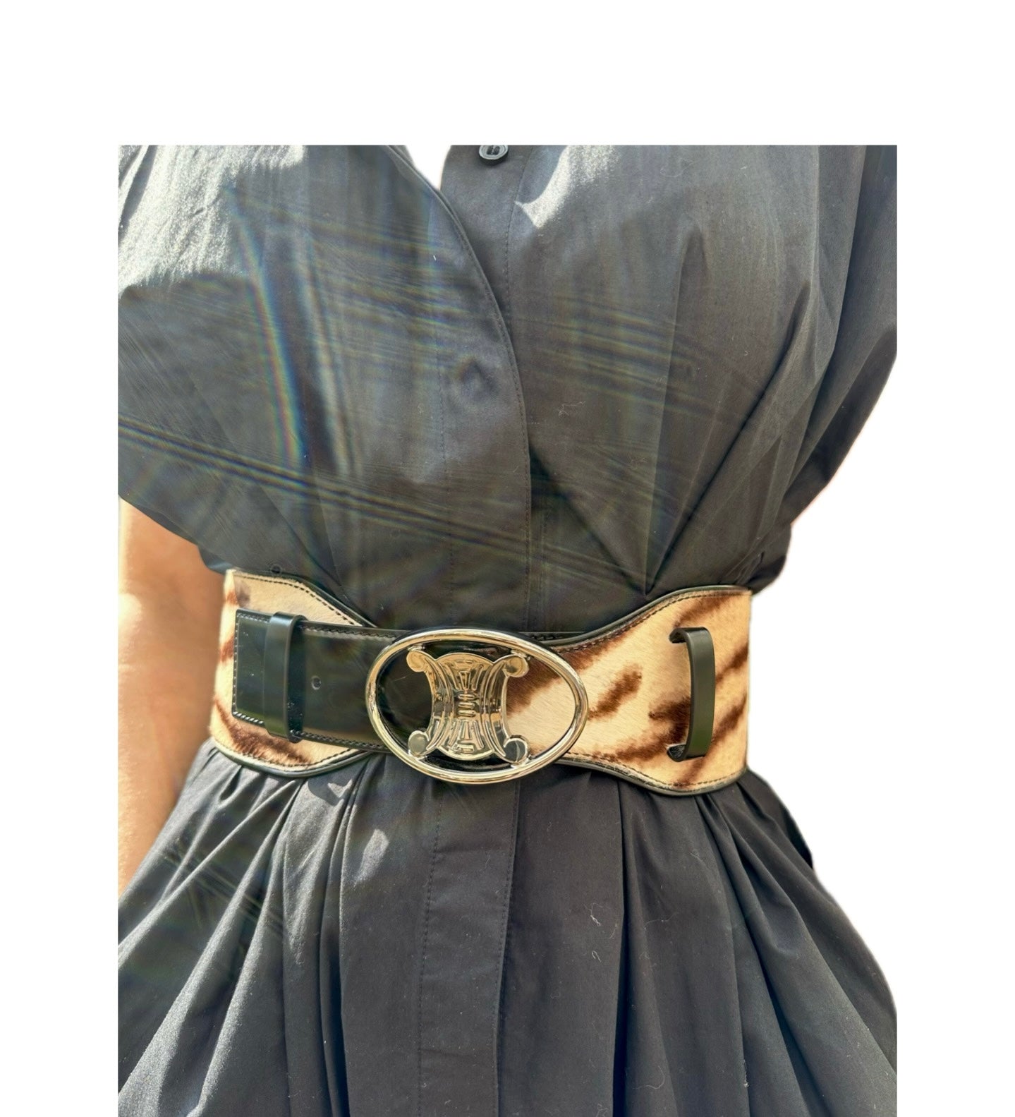Découvrez cette imposante ceinture vintage signée Céline, en taille 90 et réglable pour un ajustement parfait.