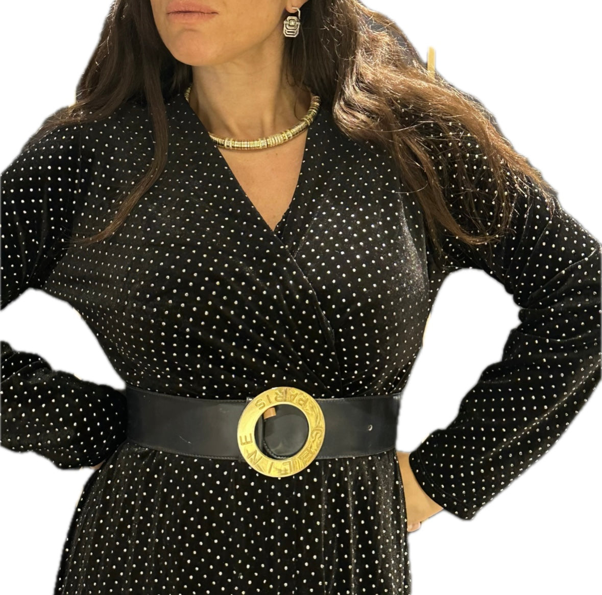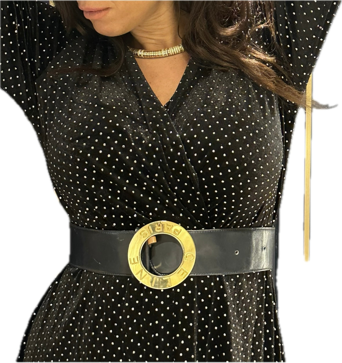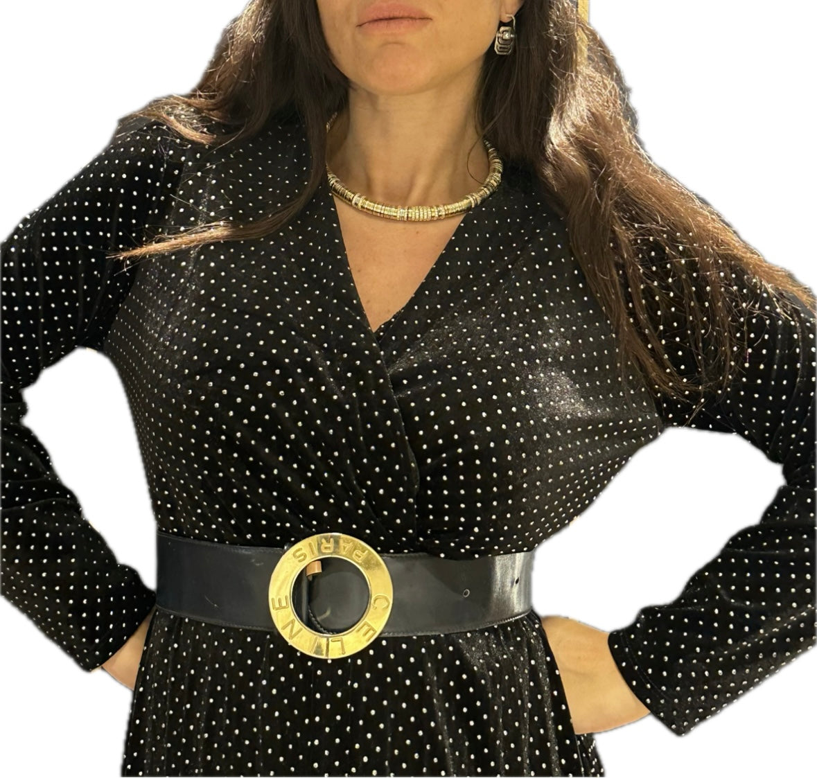 Cette ceinture vintage signée CELINE PARIS est une pièce d’exception, rare et précieuse. En cuir bleu marine profond, elle se distingue par sa boucle circulaire en métal doré, gravée du logo CELINE PARIS en lettres capitales. Un accessoire de luxe à l’allure intemporelle, parfait pour sublimer une silhouette avec force et raffinement.