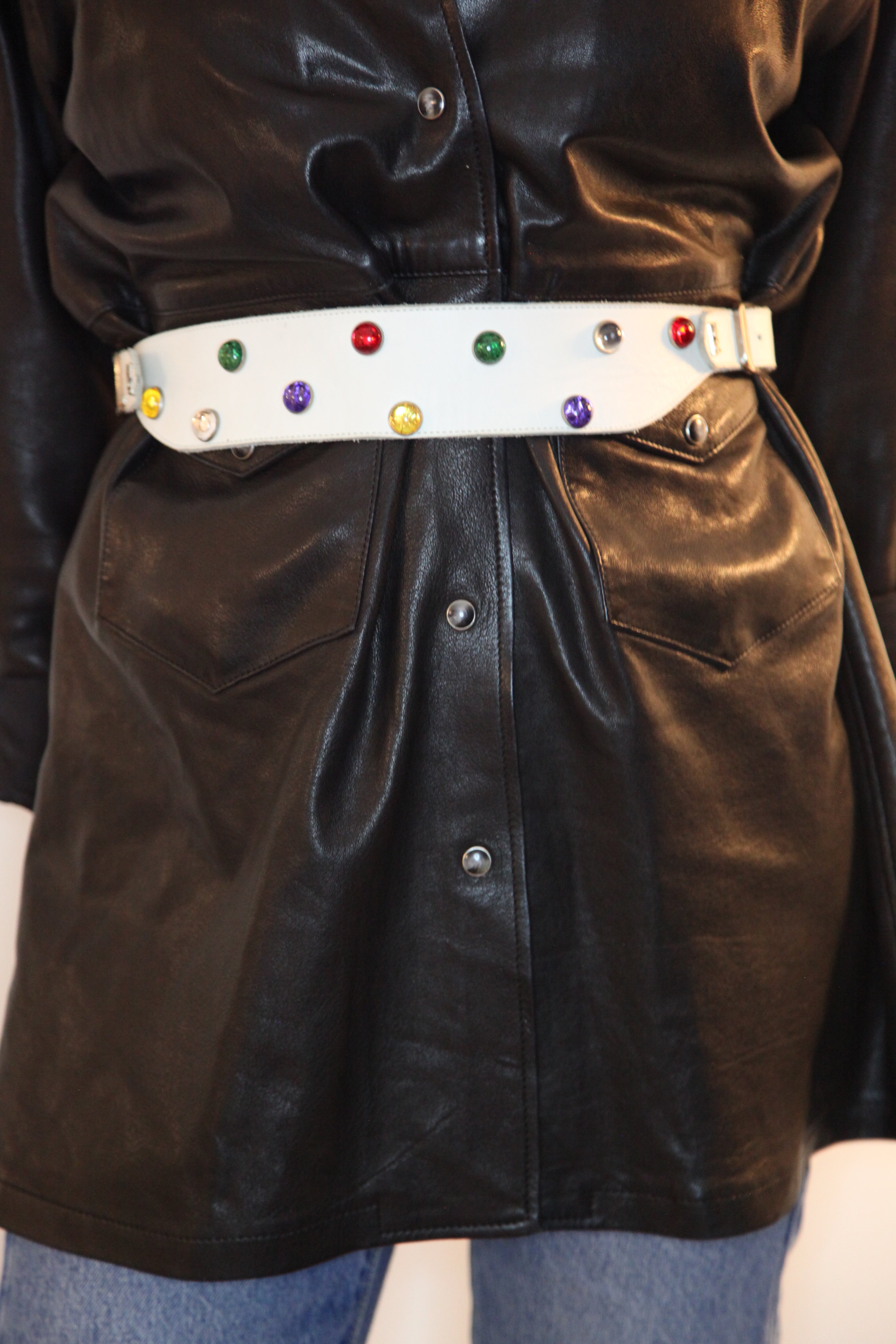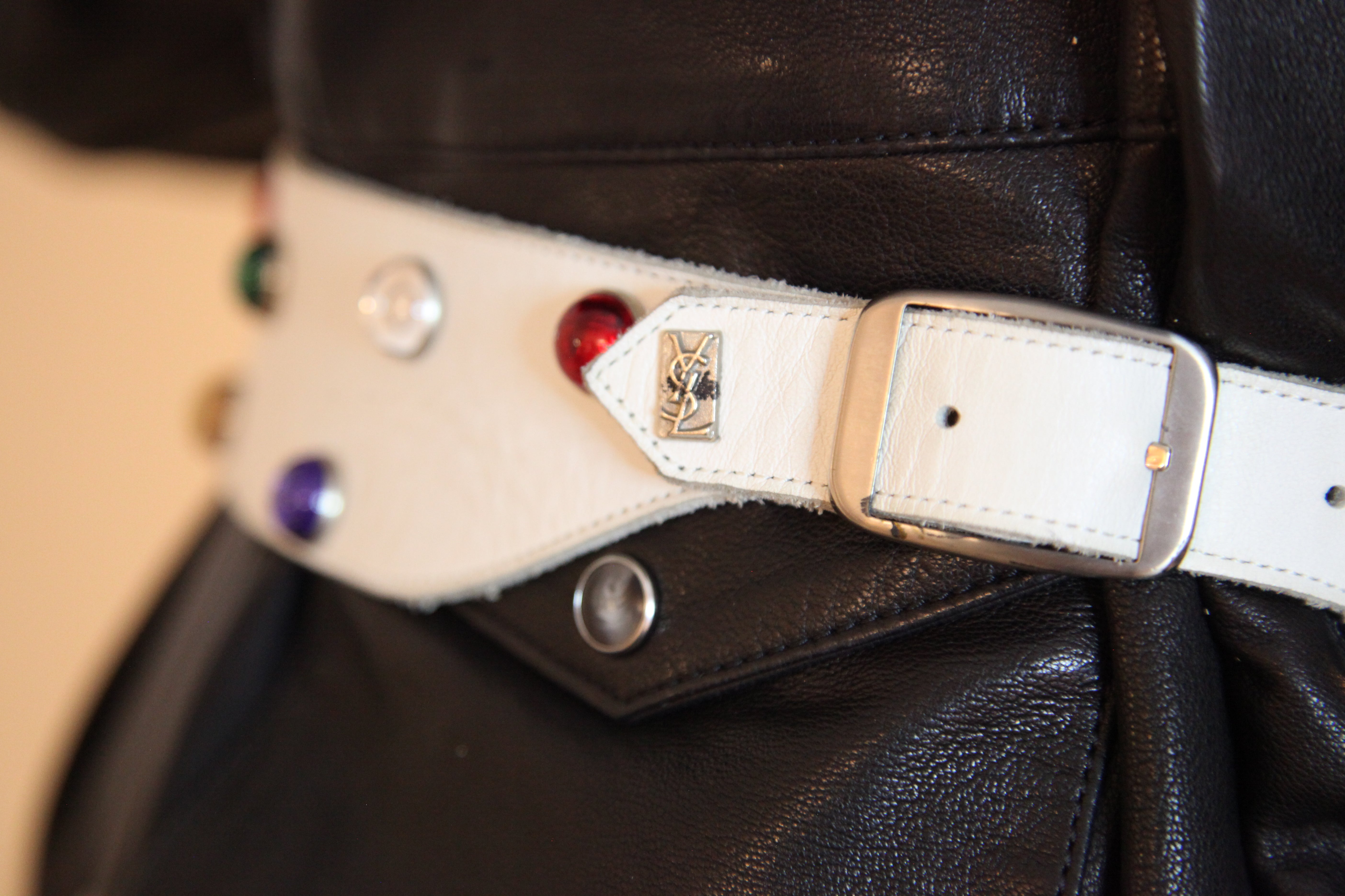 Ceinture Vintage Yves Saint Laurent - Un Arc-en-ciel de Perles sur Fond Blanc