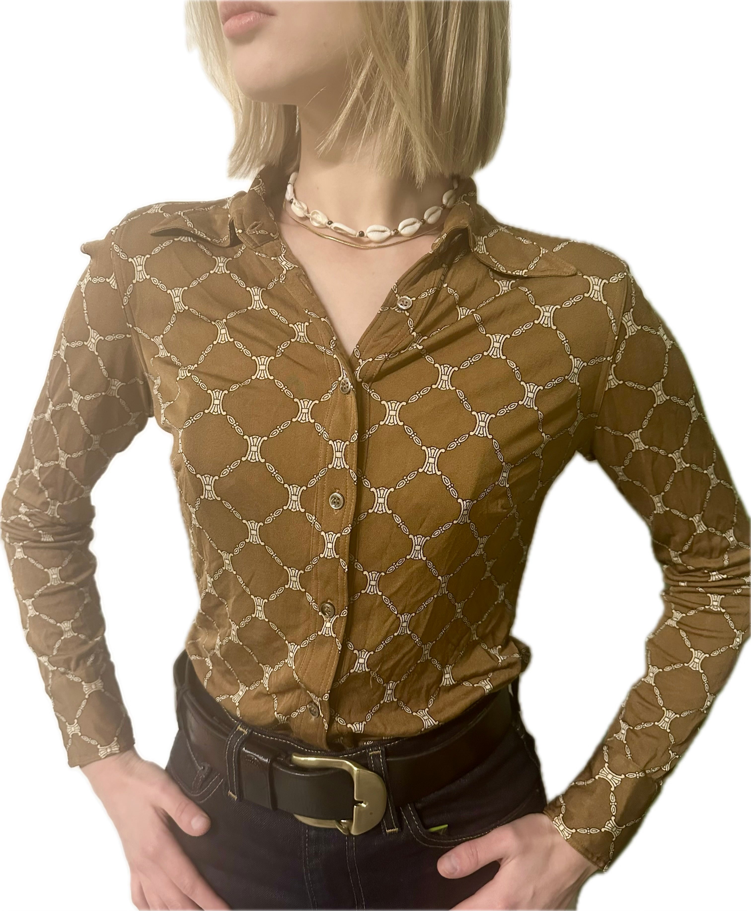Sublime chemise haute couture vintage en soie naturelle, signée CELINE.