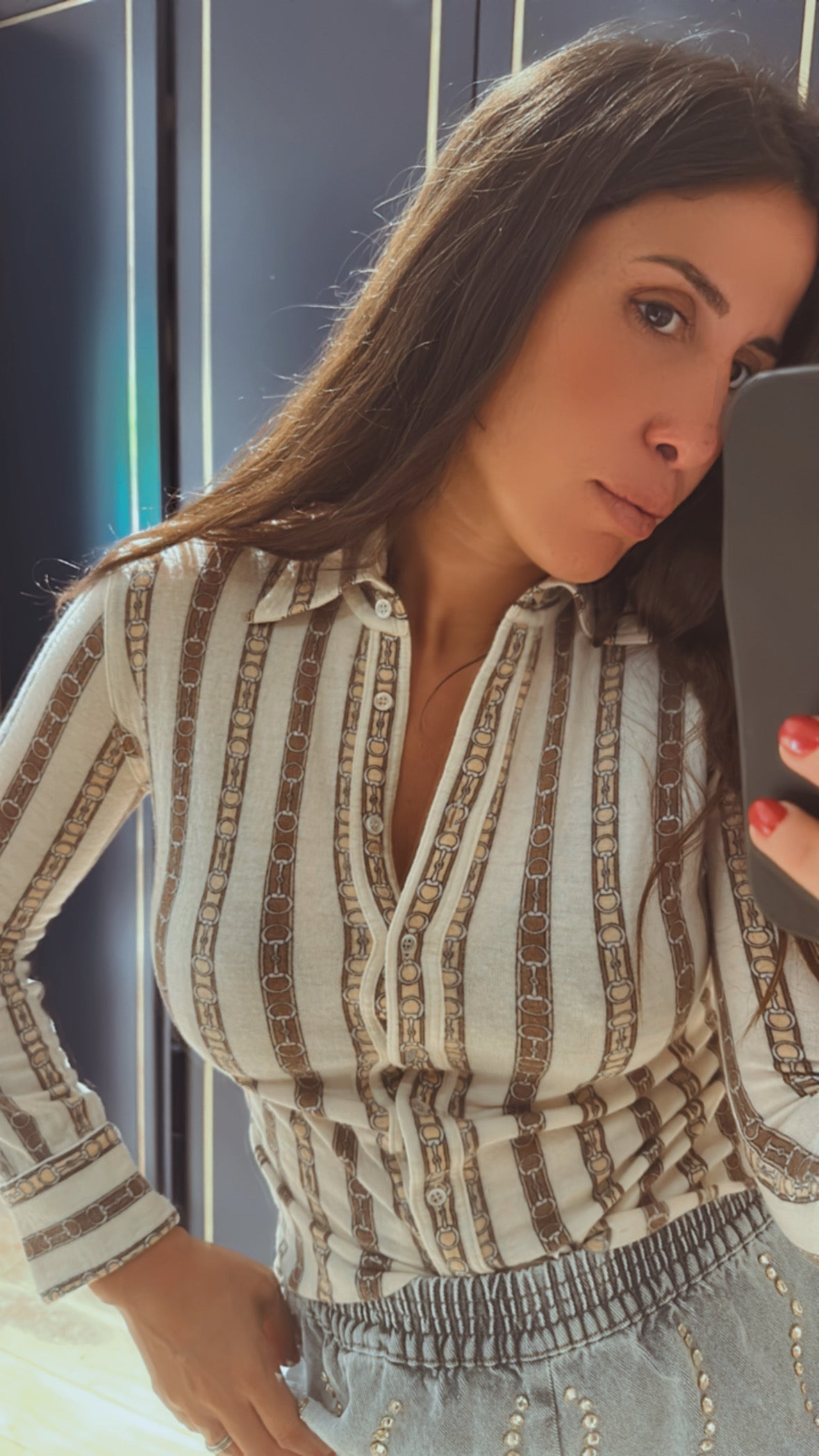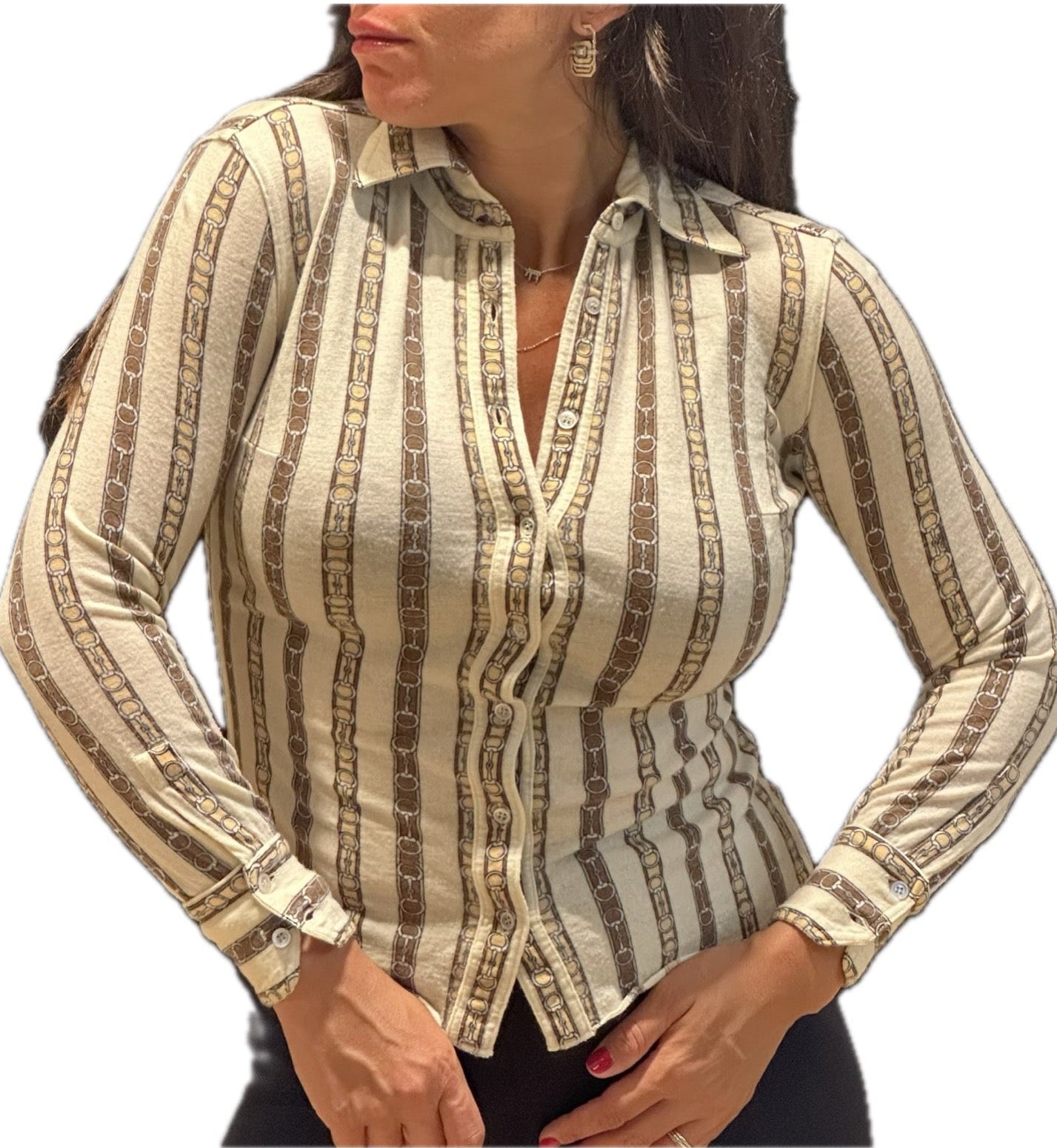 Sublime chemise CELINE vintage des années 70, au charme intemporel et à la coupe élégante.