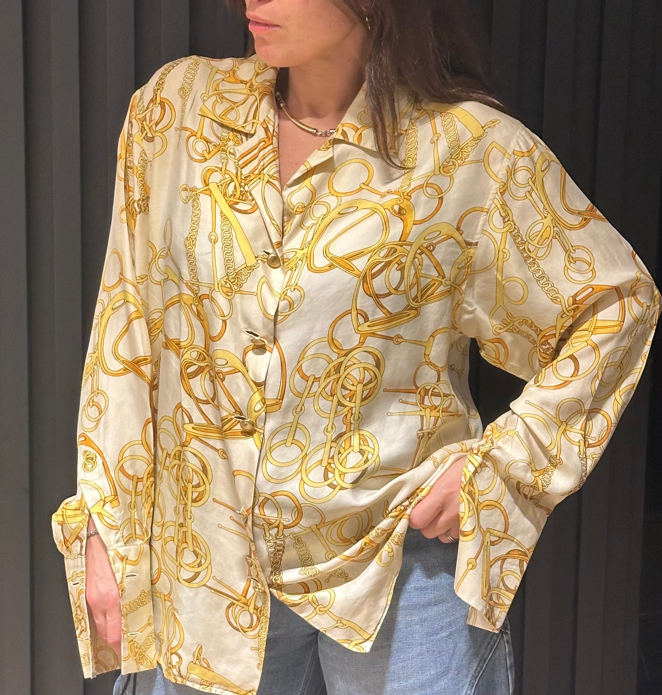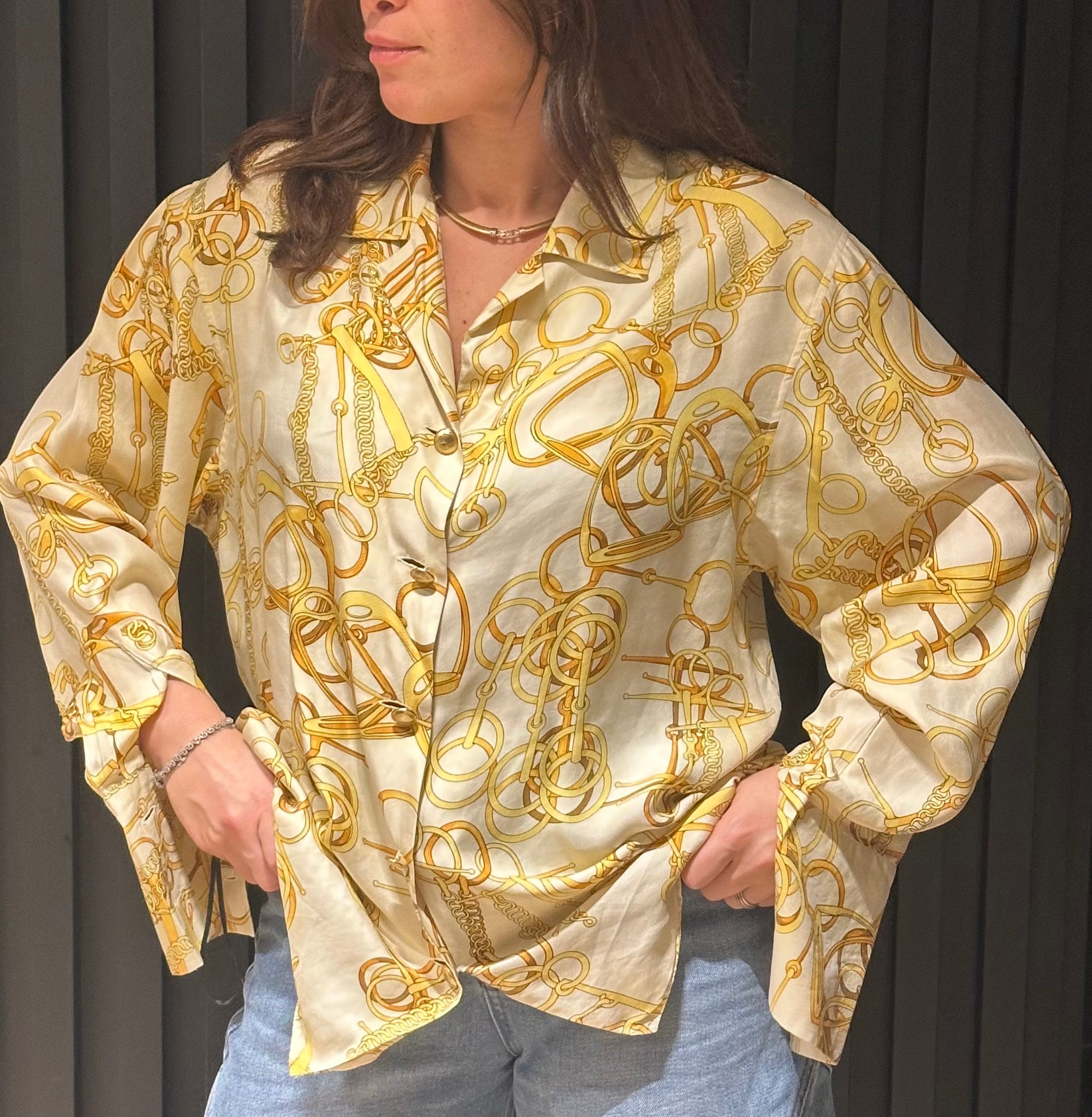 Sublime chemise vintage Gucci en soie, une pièce iconique au charme intemporel.