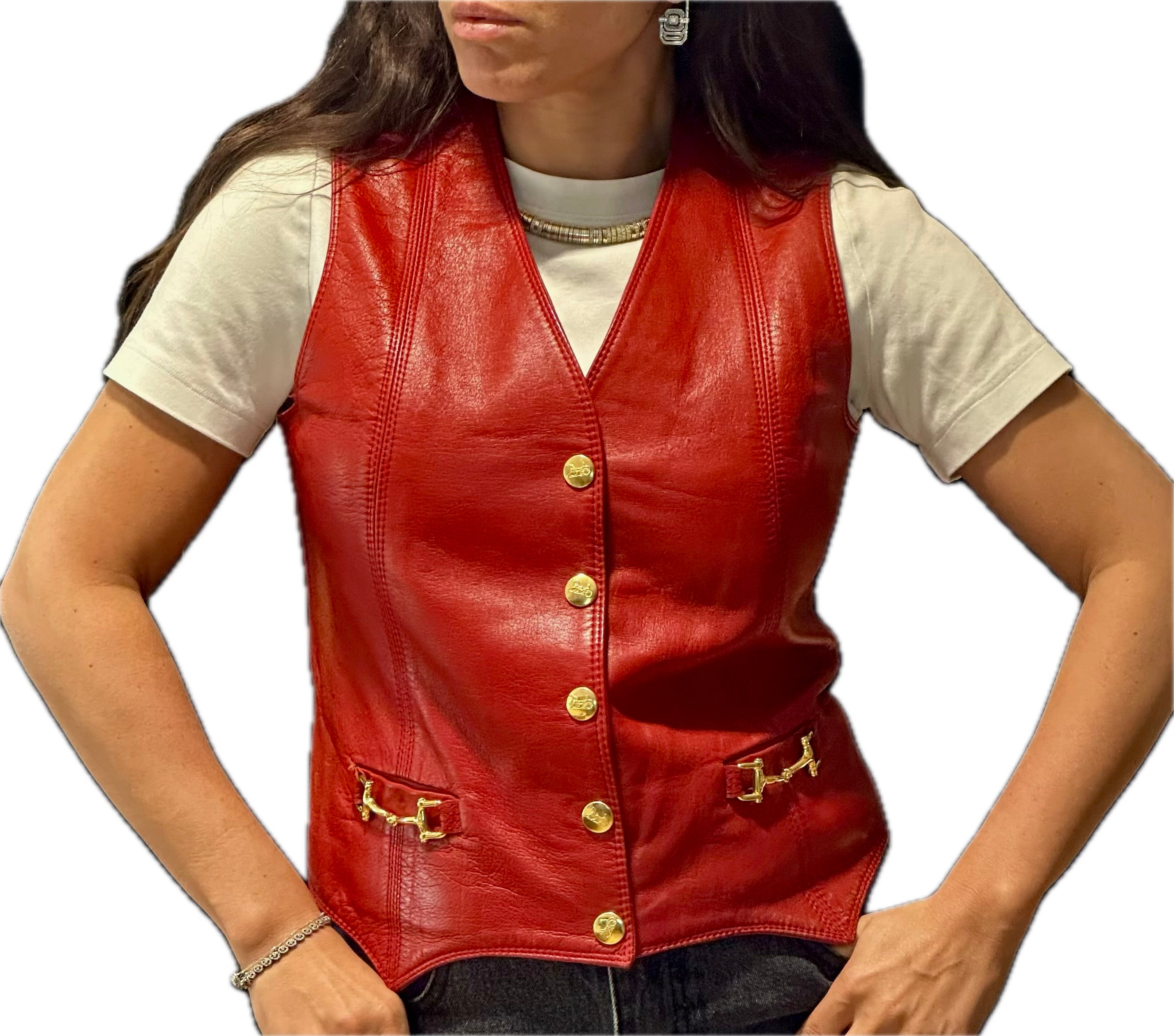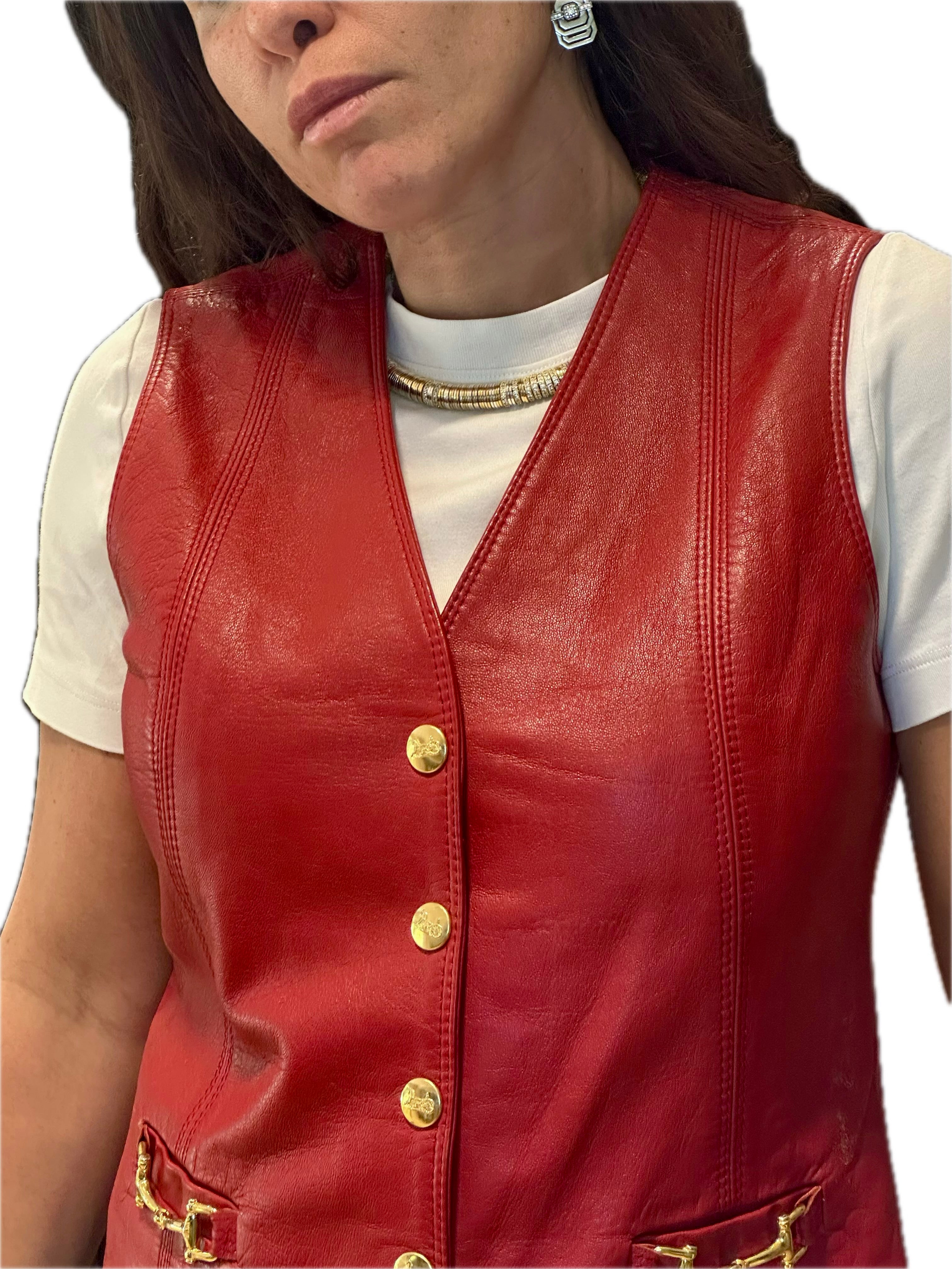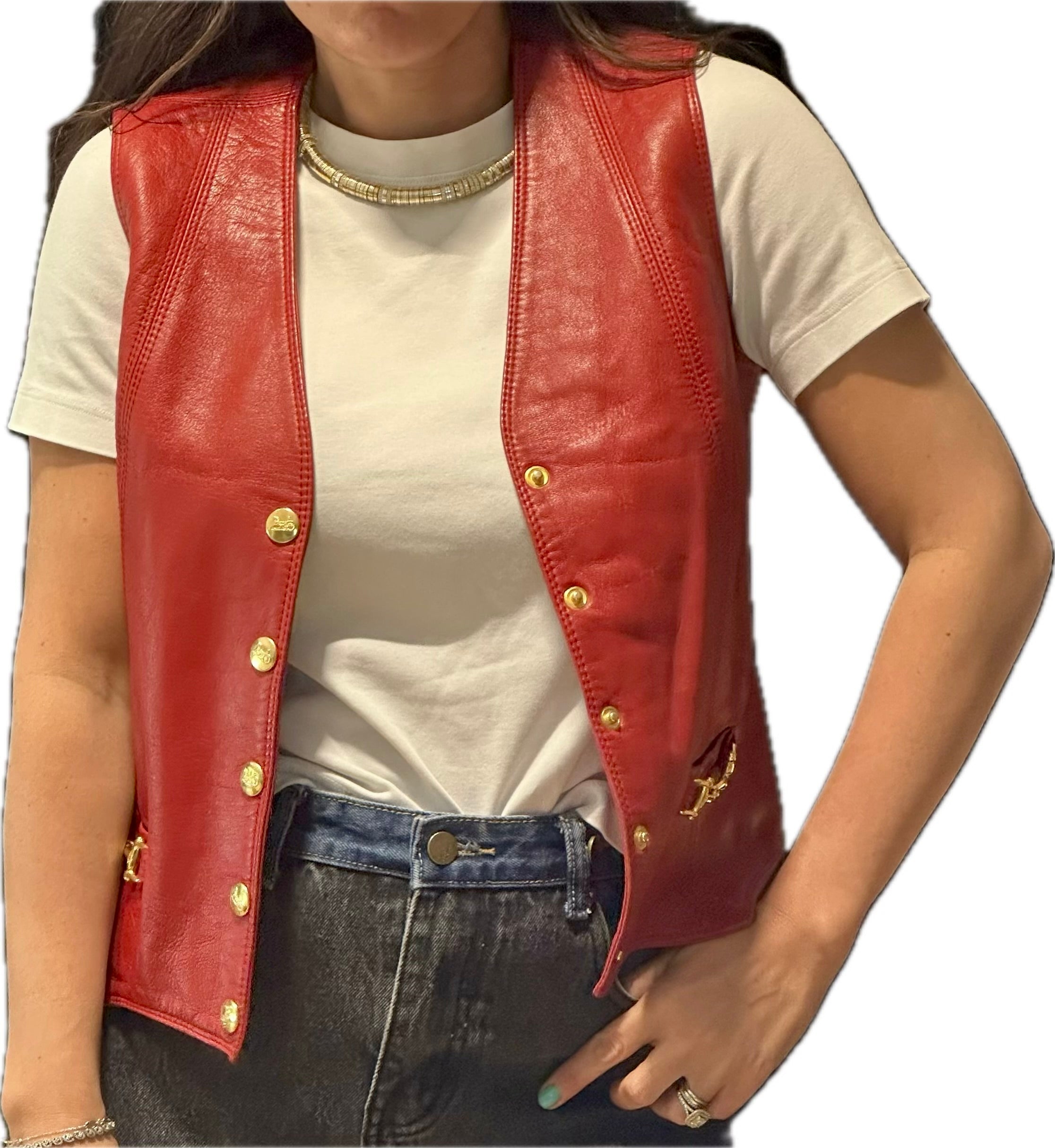 Gilet en Cuir Rouge Céline Vintage – Taille 38