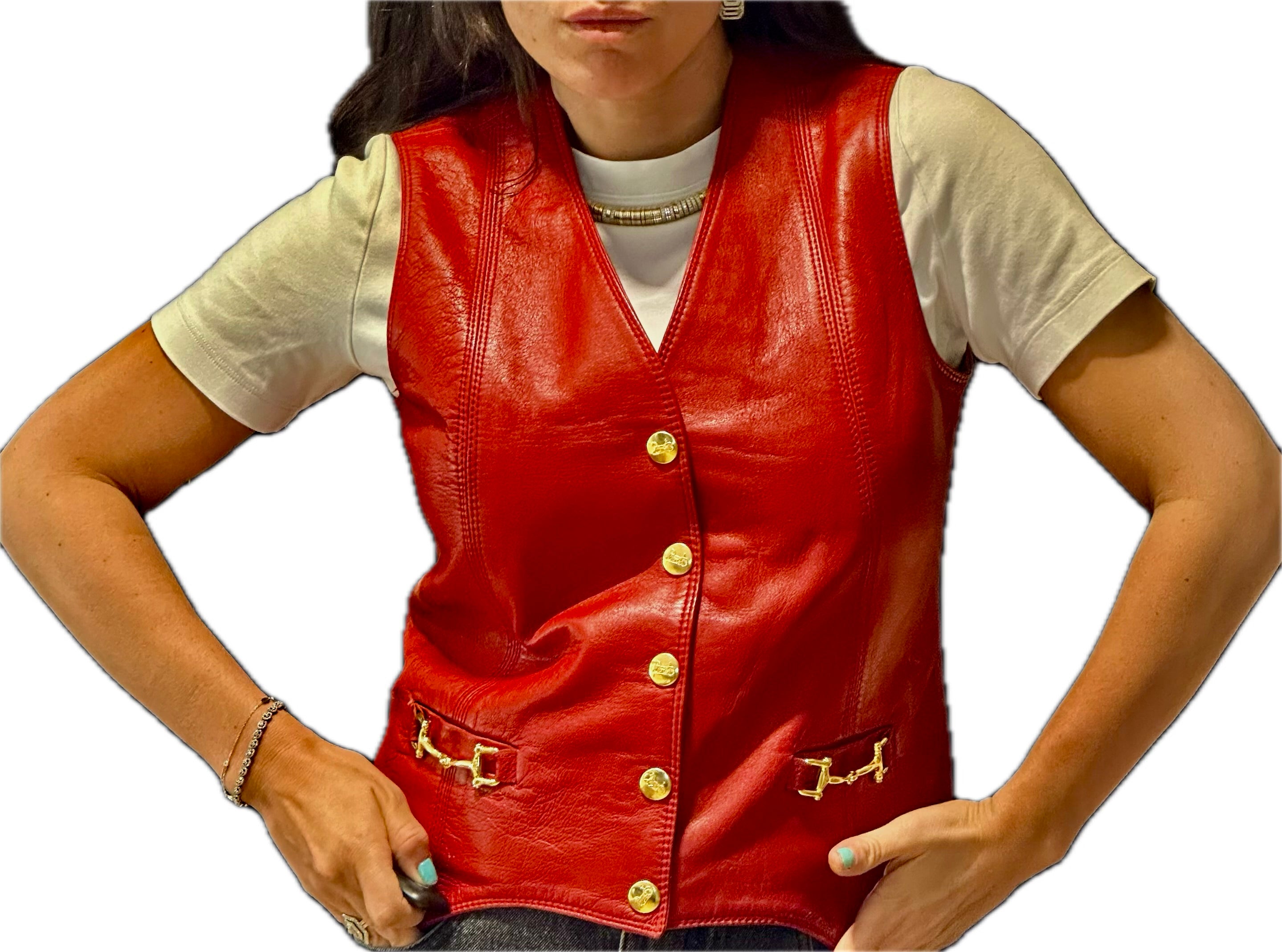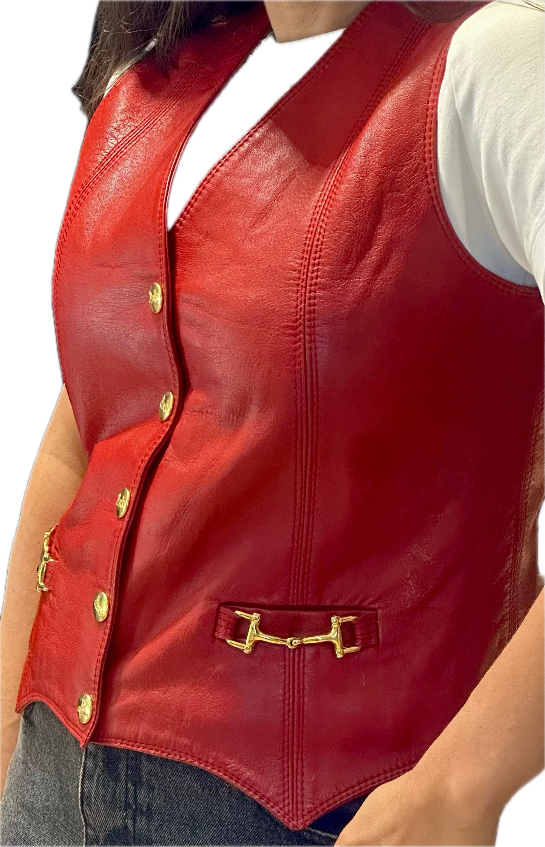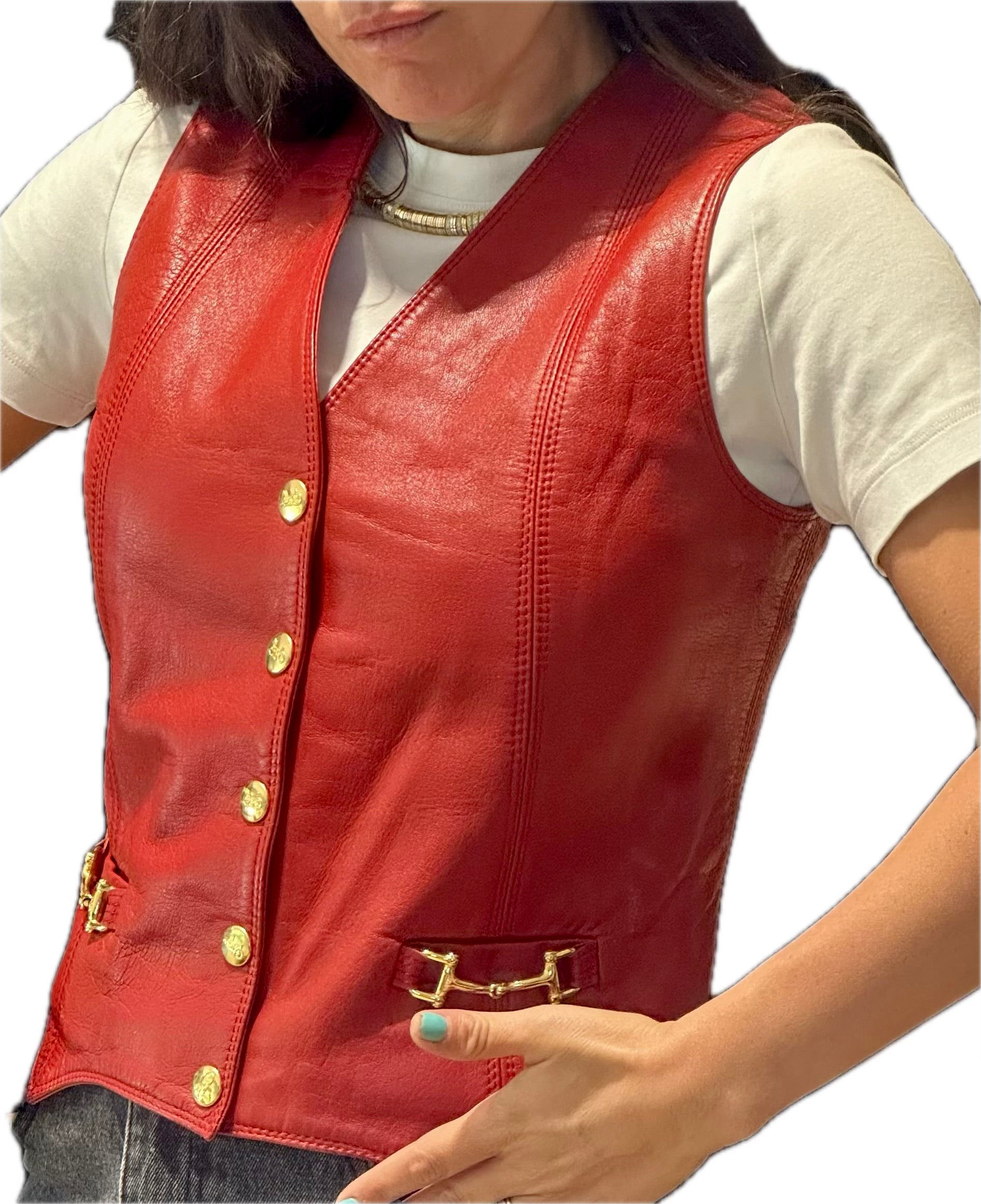 Gilet en Cuir Rouge Céline Vintage – Taille 38