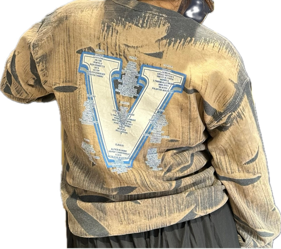 Ce sweat vintage customisé est une pièce forte et unique, entièrement retravaillée à la main dans l’atelier Luze Vintage.