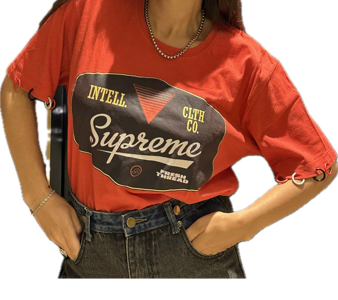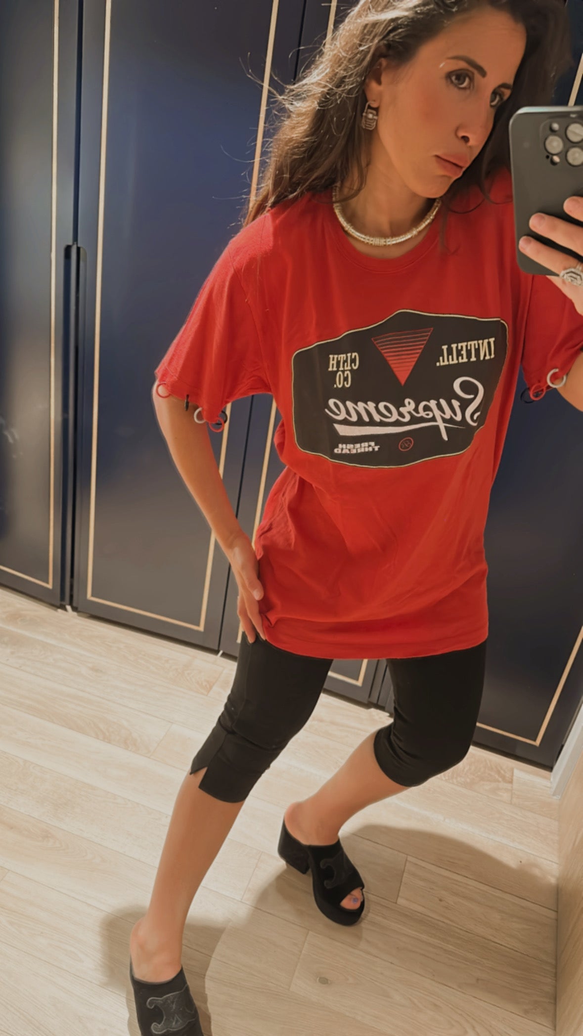 T-Shirt Rouge Vintage Customisé SUPREME – Taille Unique