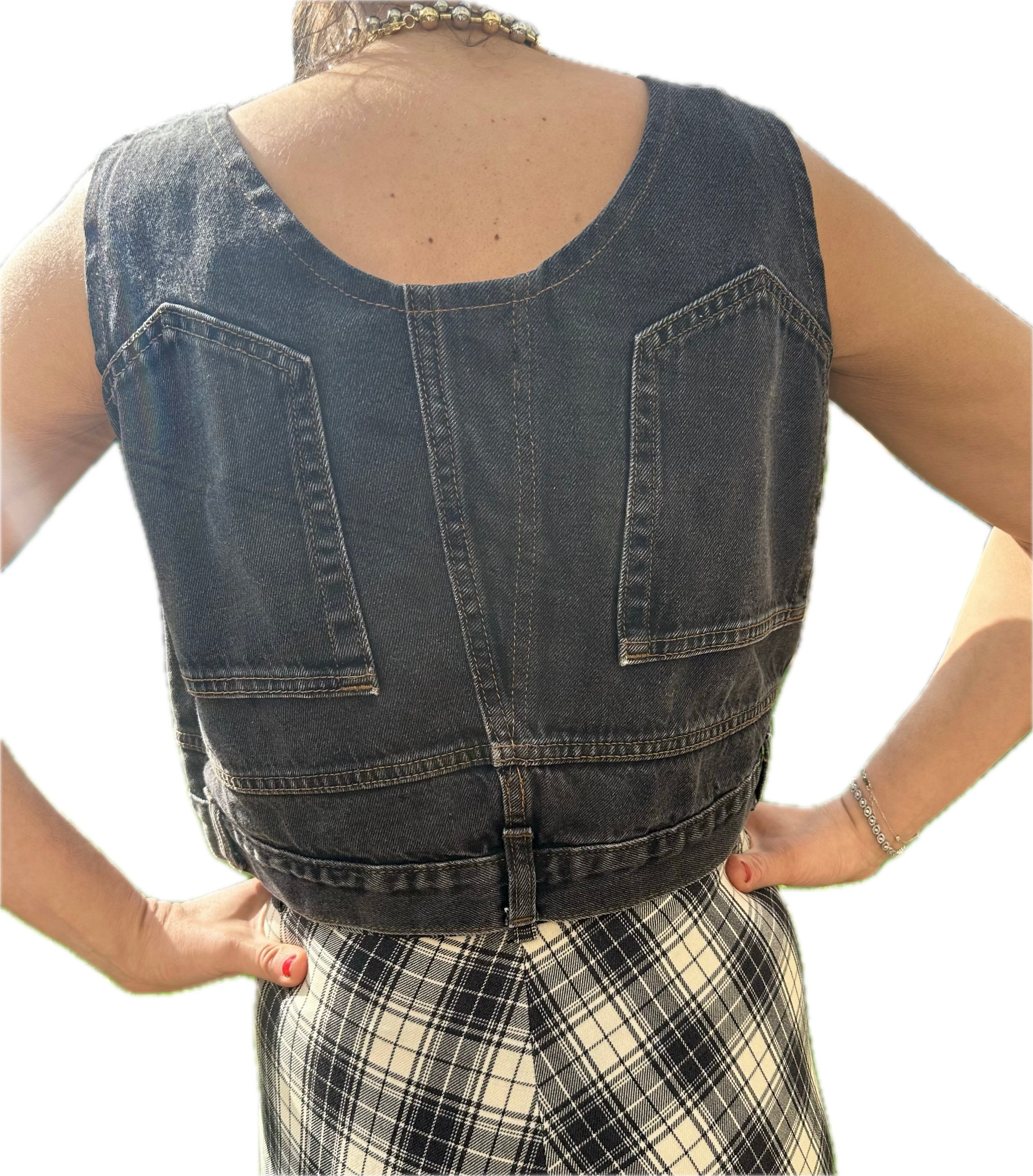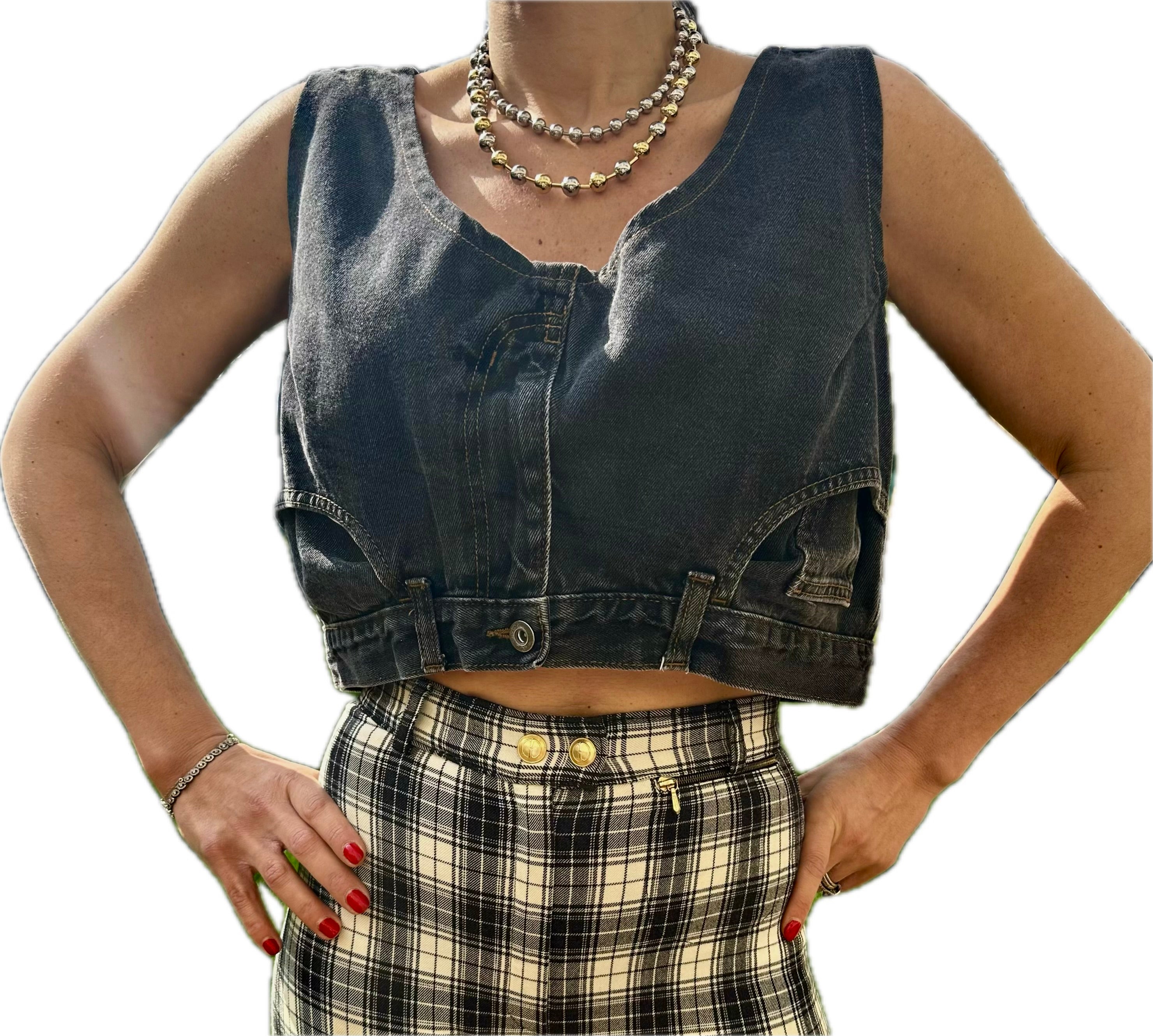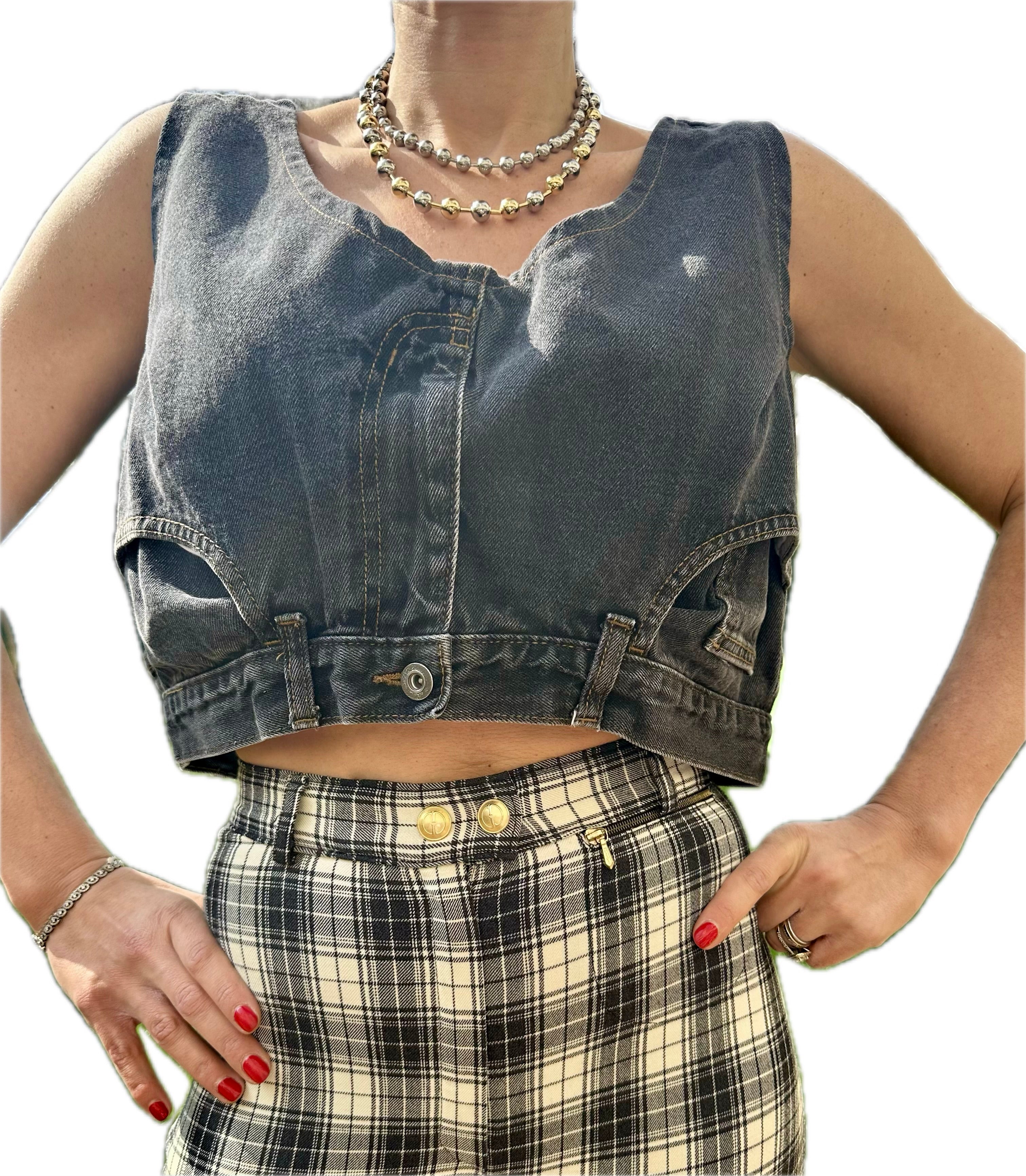 Top en Jean Vintage Customisé - Pièce Unique et Tendance
