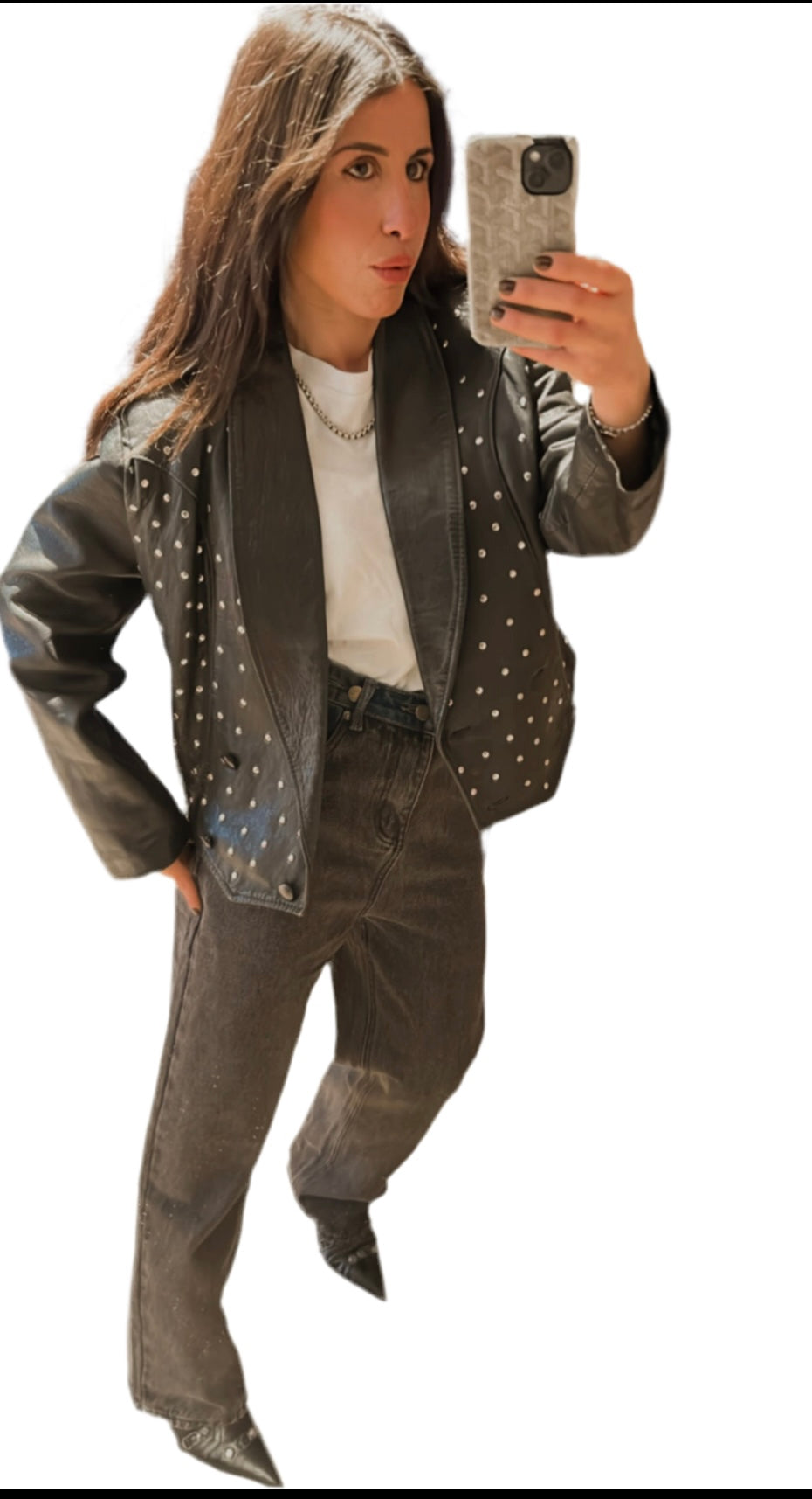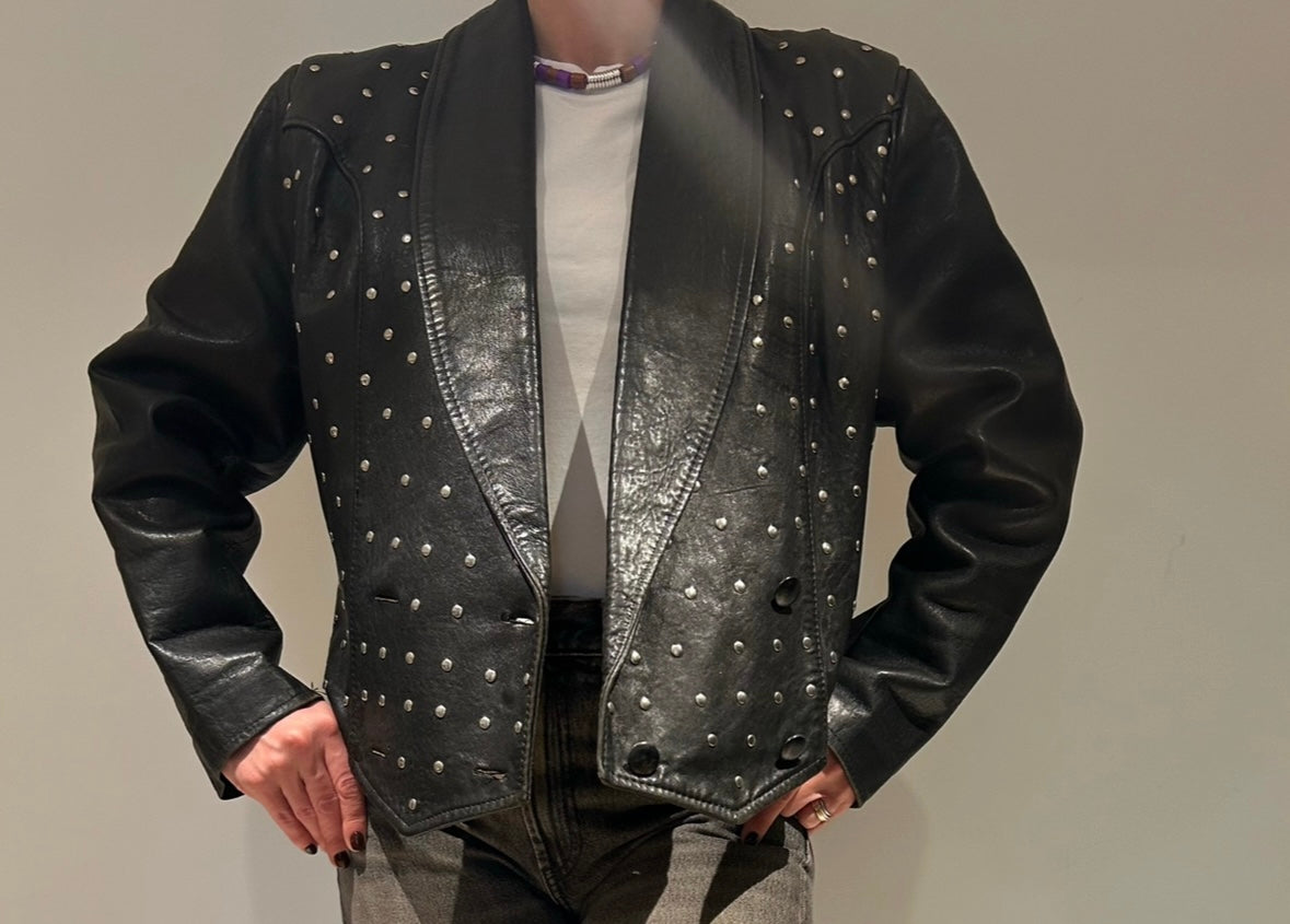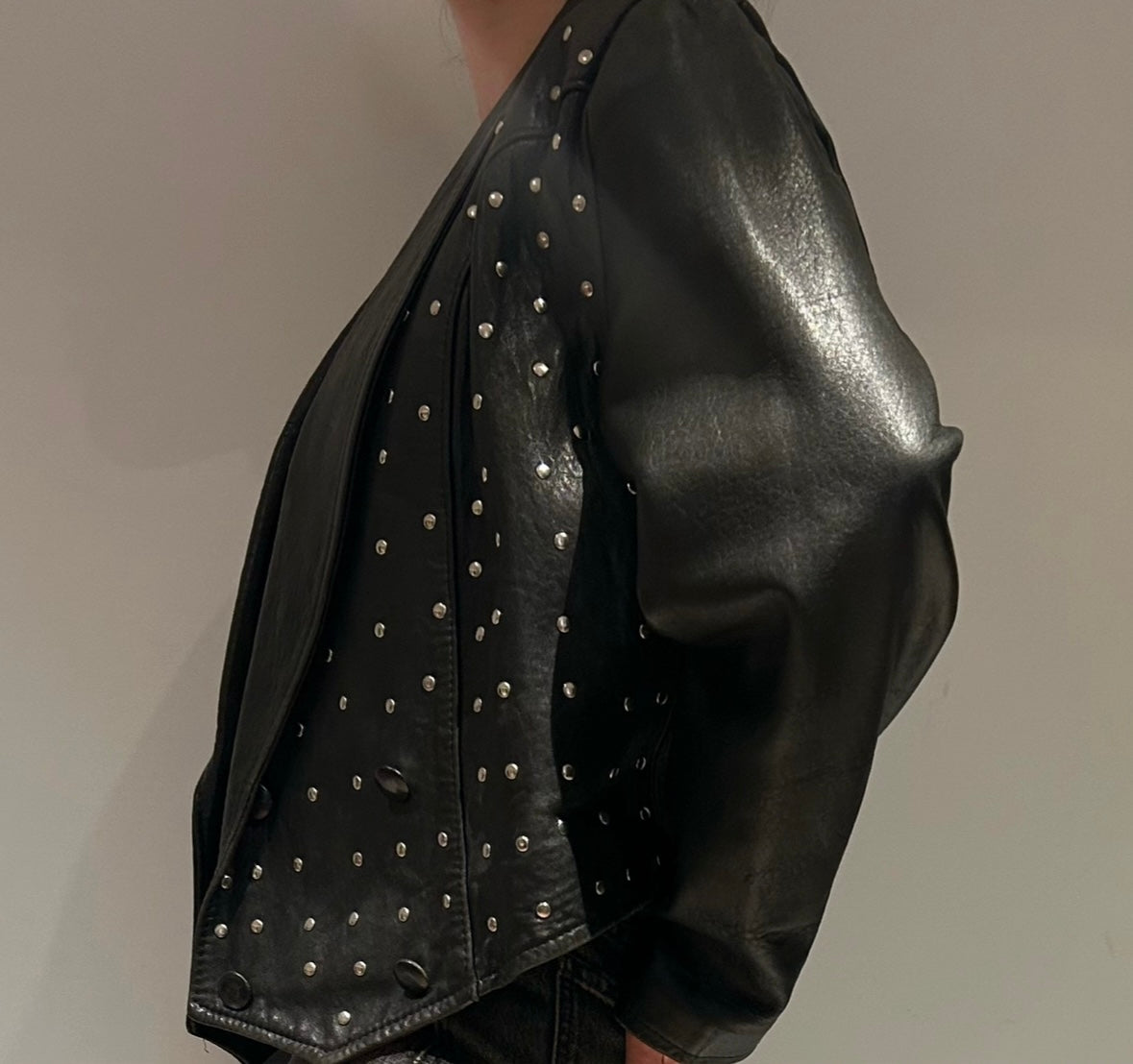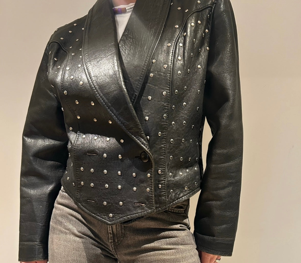 Veste en cuir noir cloutée vintage - Pièce unique et rock !