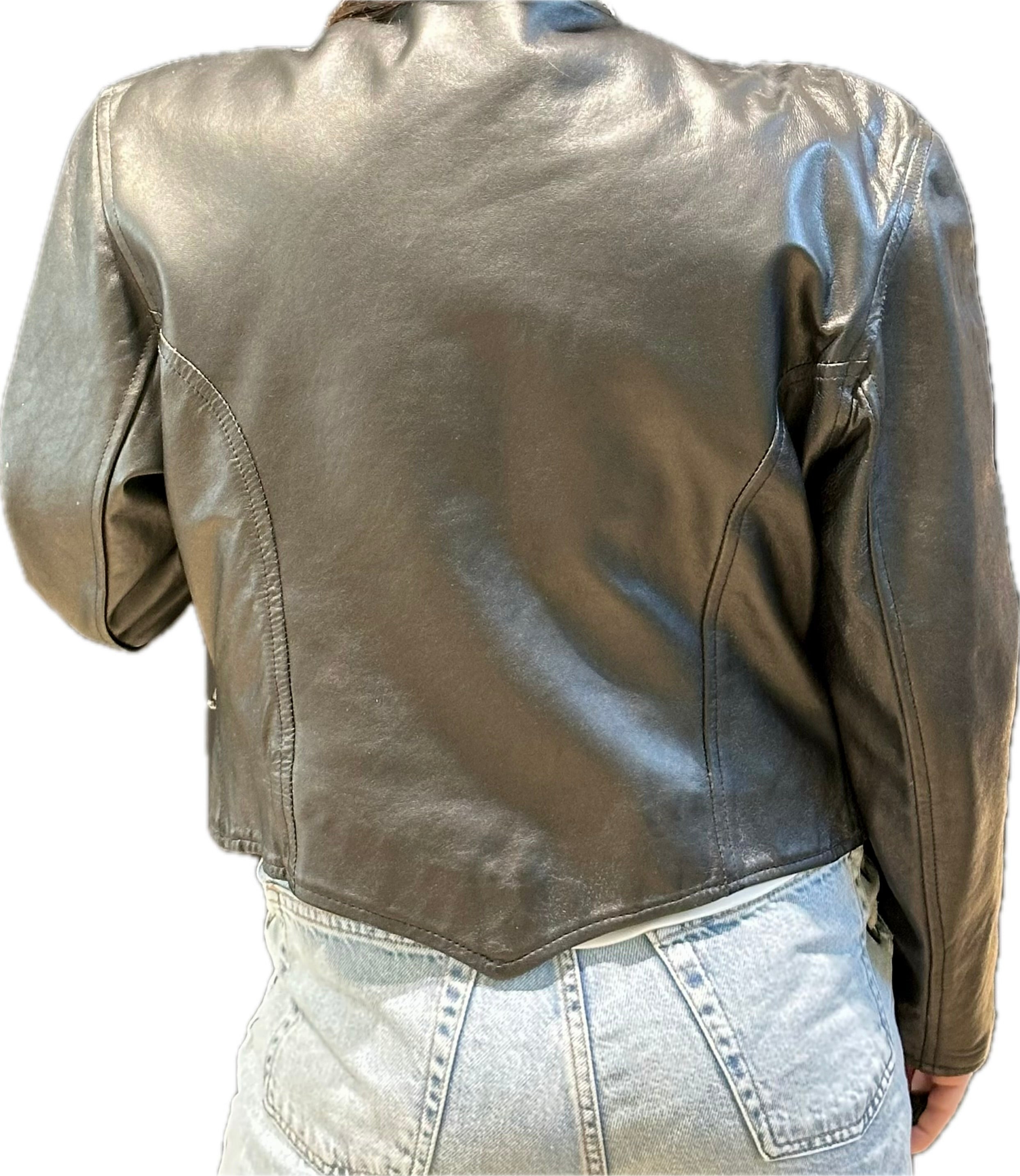 Veste en Cuir Vintage avec Détails Argentés - Taille Unique