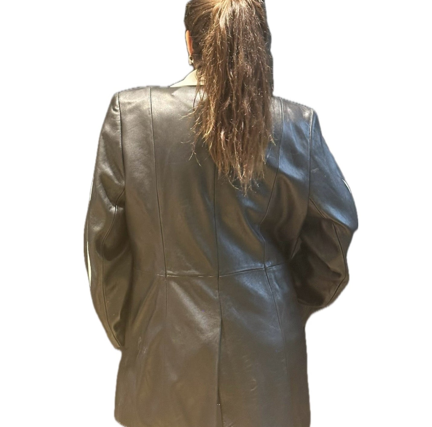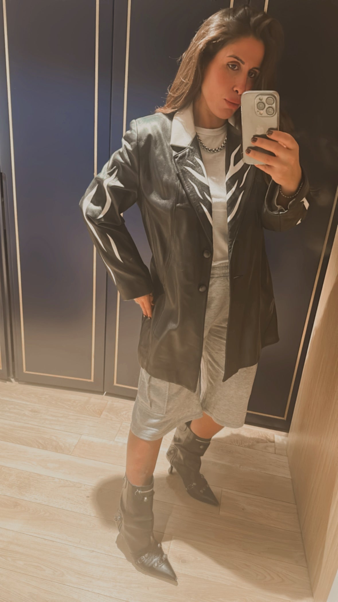 La coupe oversize et les épaules structurées lui donnent une allure puissante, tandis que la qualité du cuir lui assure une belle tenue et une durabilité remarquable. Idéale à porter sur un jean, une jupe ou même une robe fluide pour casser les codes.