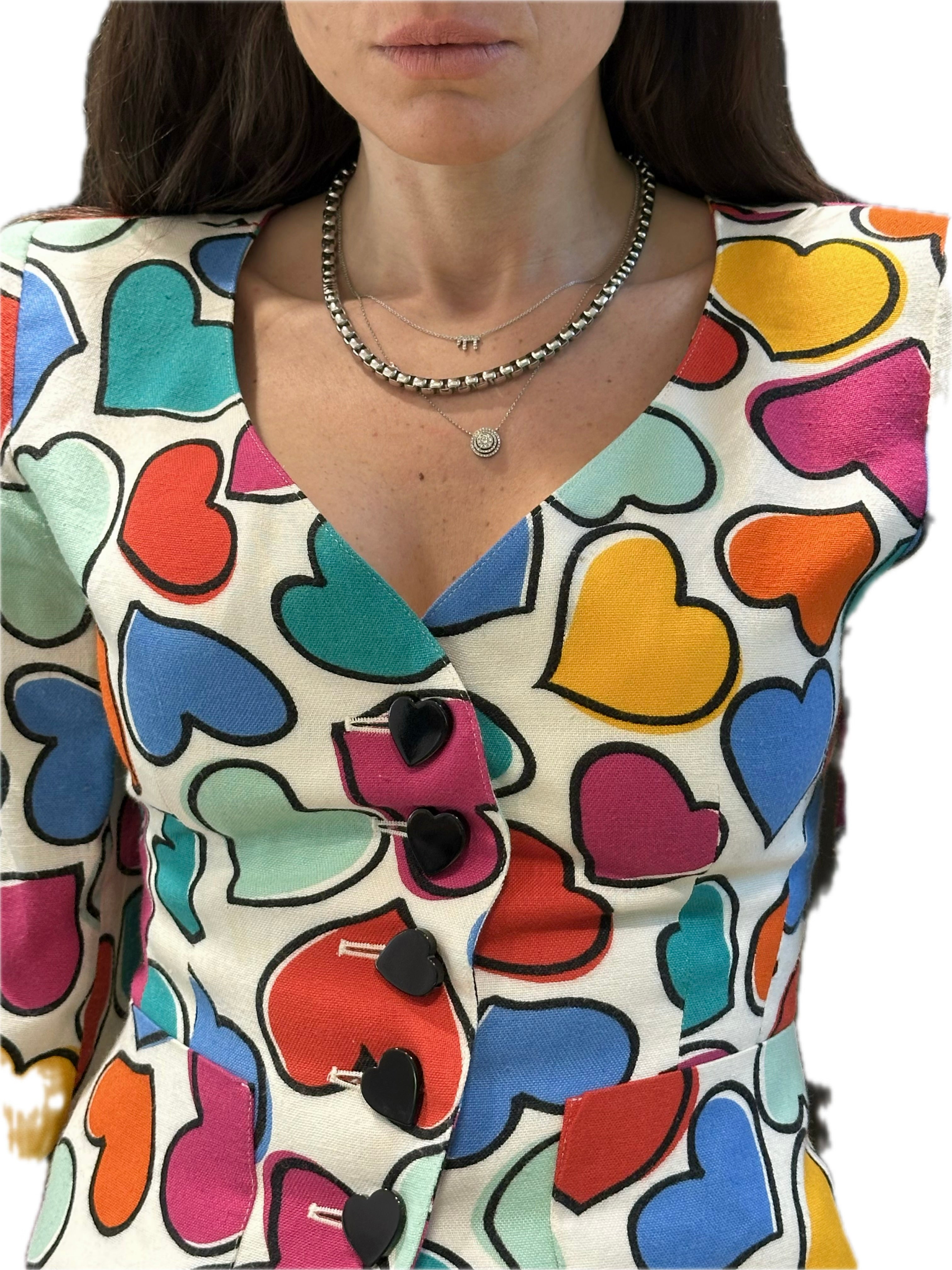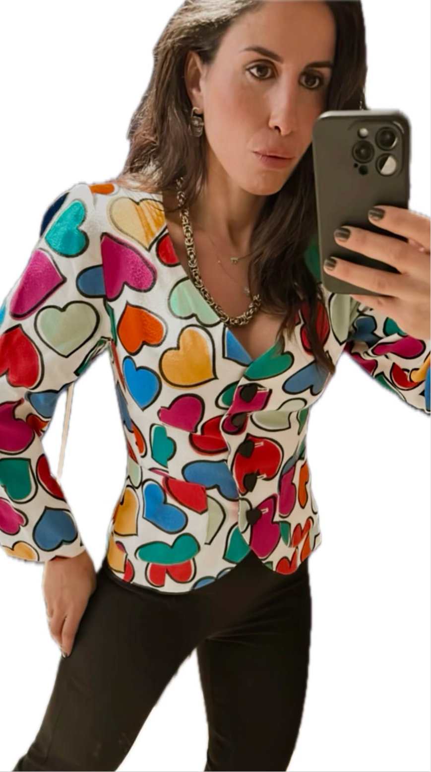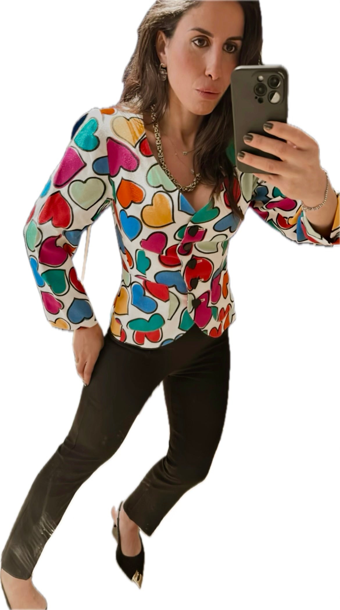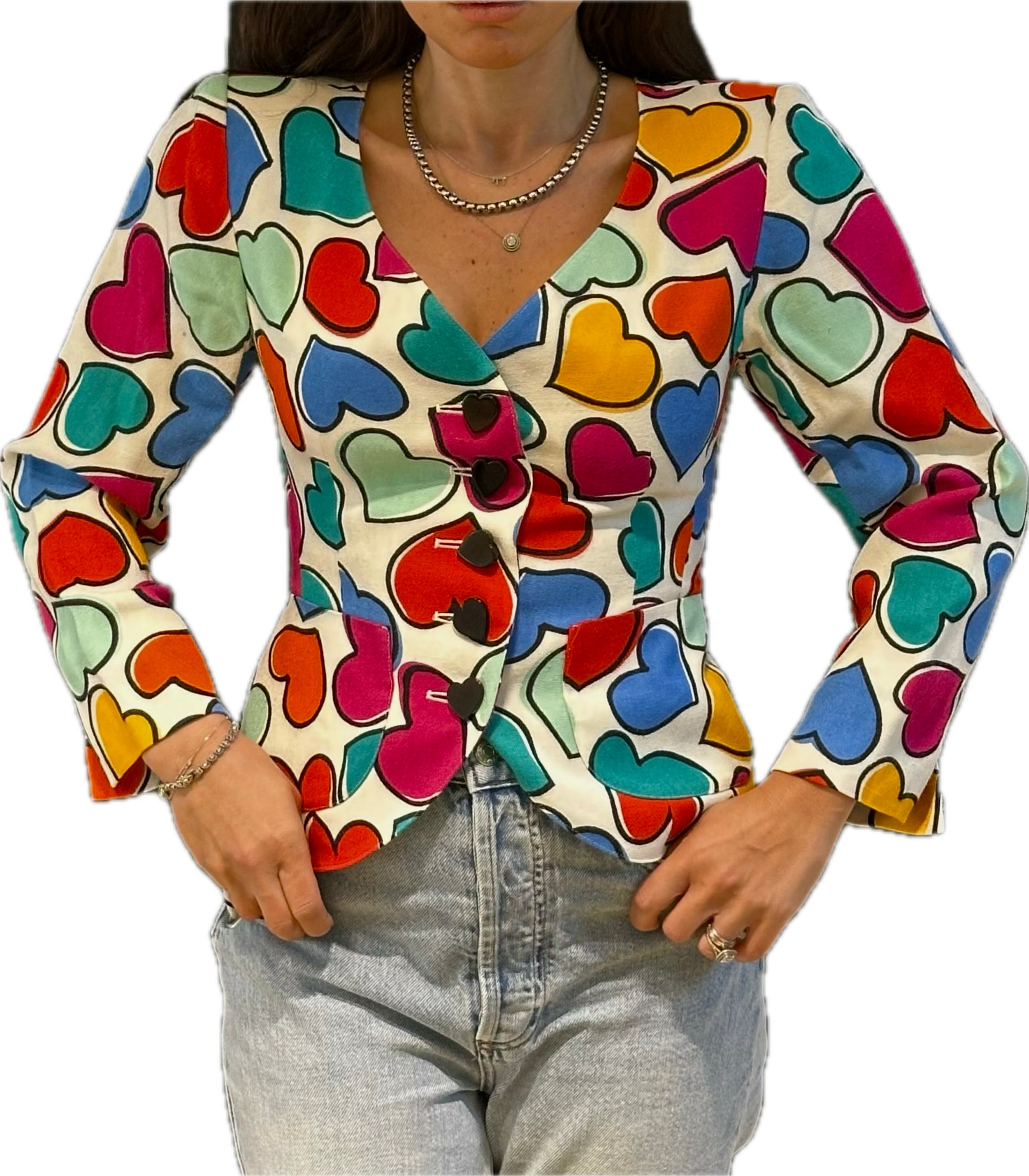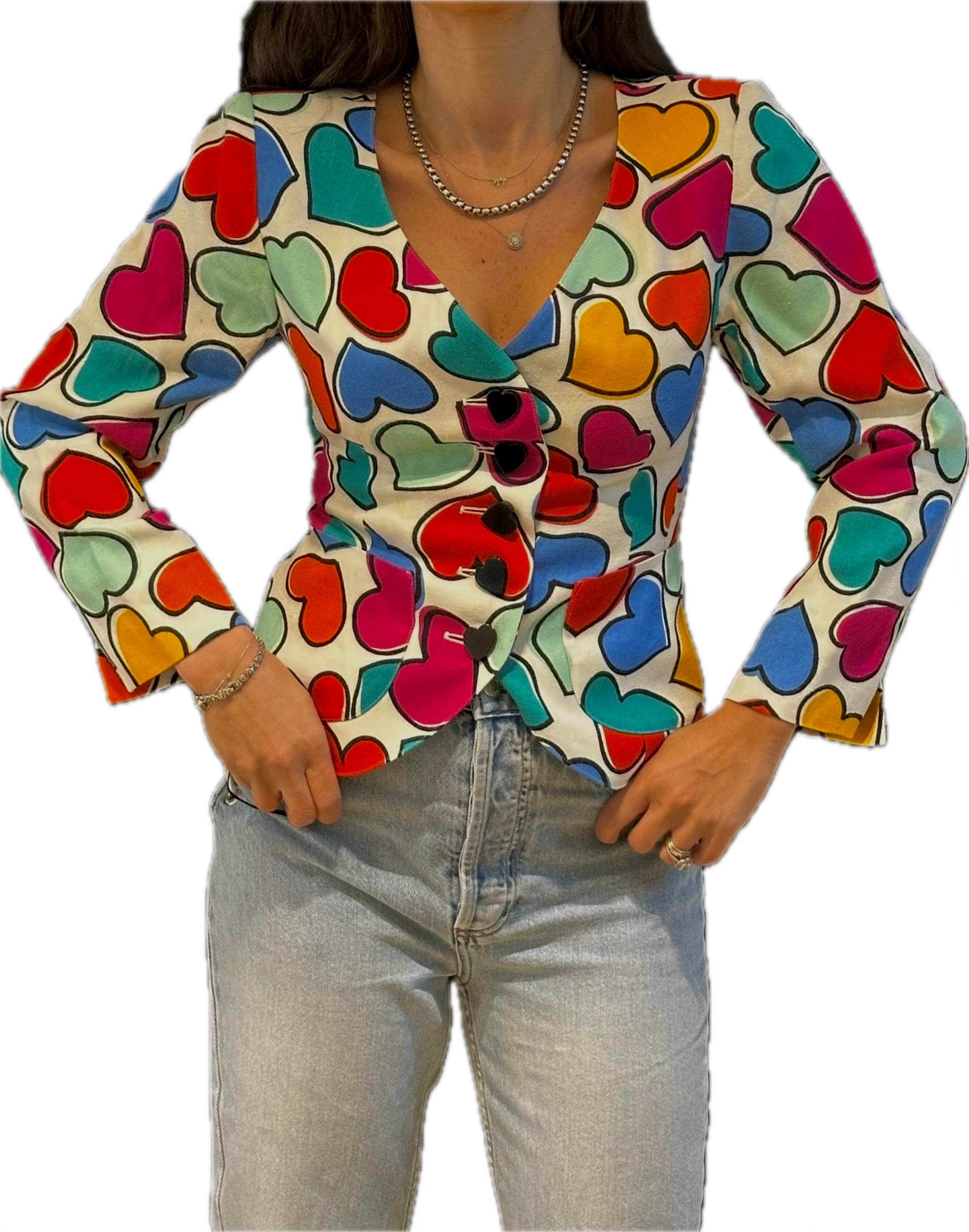 Veste Vintage Yves Saint Laurent Variation - Imprimé Cœurs Multicolores - Taille 36